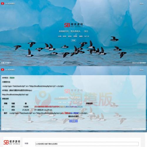 一言,鸡汤,诗词API接口支持投稿源码。这款源码是通过参考“雨落凋殇”博客的随机语录开源代码进行重新编写的,完善了后台各项基本功能,支持投稿,加强了sql语句的处理。采用php+sqlite的方式开发,正式使用请自行修改sqlite数据库的名称后再在config.php文件中修改相关信息即可。