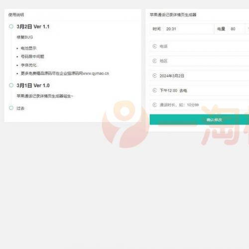 苹果通话记录截图生成网页源码,简单可用的苹果通话记录截图生成工具源码,无广告。